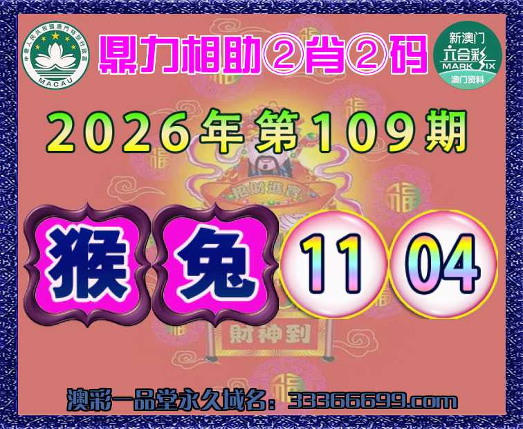 109期:《鼎力相助》 ②肖②码【猴】【11.04】开:兔1621:20分提前公开